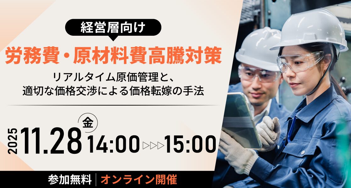 【経営層向け】労務費・原材料費高騰対策 ~リアルタイム原価管理と、適切な価格交渉による価格転嫁の手法~