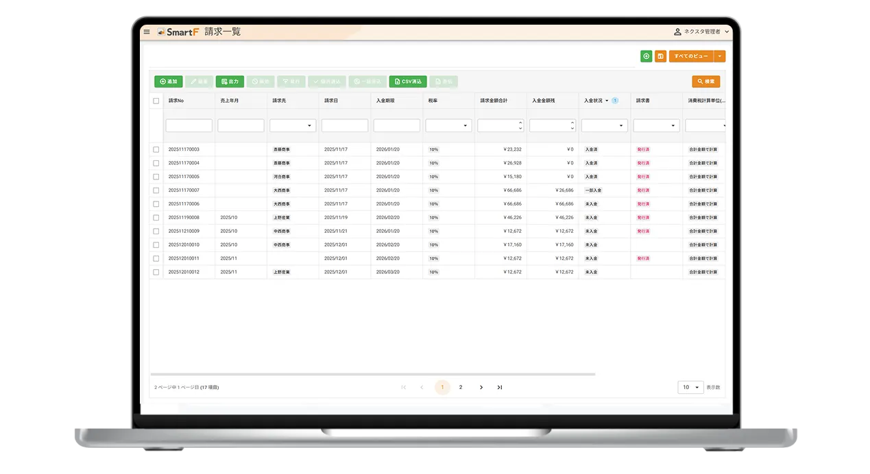- 請求書の一括作成&自動送付で手間・ミス削減